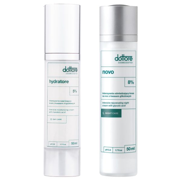 Krem z kwasem migdałowym i odmładzający krem do twarzy na noc z kwasem glikolowym to połączenie idealne dla osób borykających się z niedoskonałościami skóry i nadmiernym wydzielaniem sebum. Zestaw kosmetyków do pielęgnacji sprawdzi się dla osób chcących działać anti-aging i zapobiegać pojawieniu się pierwszych zmarszczek.
