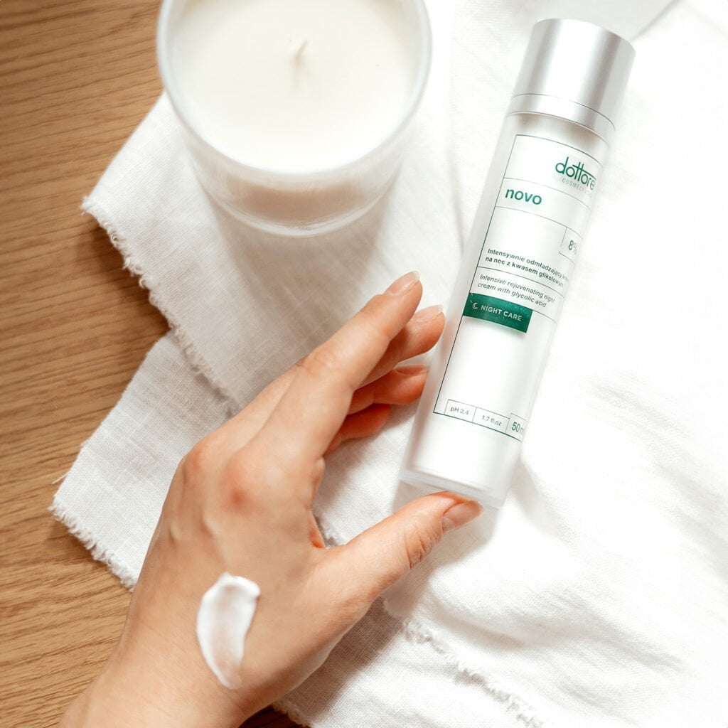 Kosmetyki z kwasem glikolowym są najlepszym rozwiązaniem dla osób, które szukają skutecznego, odmładzającego kremu do twarzy na noc. Odmładzający krem na do twarzy na noc novo powstał dla skóry starzejące się, matowej, z widocznymi oznakami starzenia oraz pierwszymi zmarszczkami.